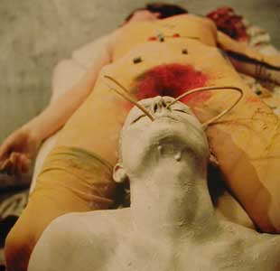 A mûvészetben a rekordorgazmusban rejlik a veszély, a szüntelenül a valóság terei fölött körözõ rajzásban. Az idegcsiklandozás permanenciája alighanem kiöli az ibolyavirágpotenciát. Mûvészet és világrekord: egy perc alatt megfesteni egy képet, és mégis olyan híressé válni, mint Dürer vagy Seurat. Bármennyire is igyekeznek egyesek, sport és mûvészet összeegyeztethetetlennek látszik. Szexuálmûvészet Valódi szexuálmûvészet nem létezik. Az orgazmus ellenáll minden leírásnak. A szexualitás okozta megfilmesített öröm soha nem pótolja a bõr-a-bõrhöz minõséget. Az erotikus mûvészetre halomszám vannak példák. A valódi szexuálmûvészetet még fel kell találni. Továbbra is Esther Williams-féle fürdõruhákkal és Sophia Loren-féle melltartókkal van dolgunk. Mikor érjük el végre a magasmûvészeti pornográfia stádiumát?