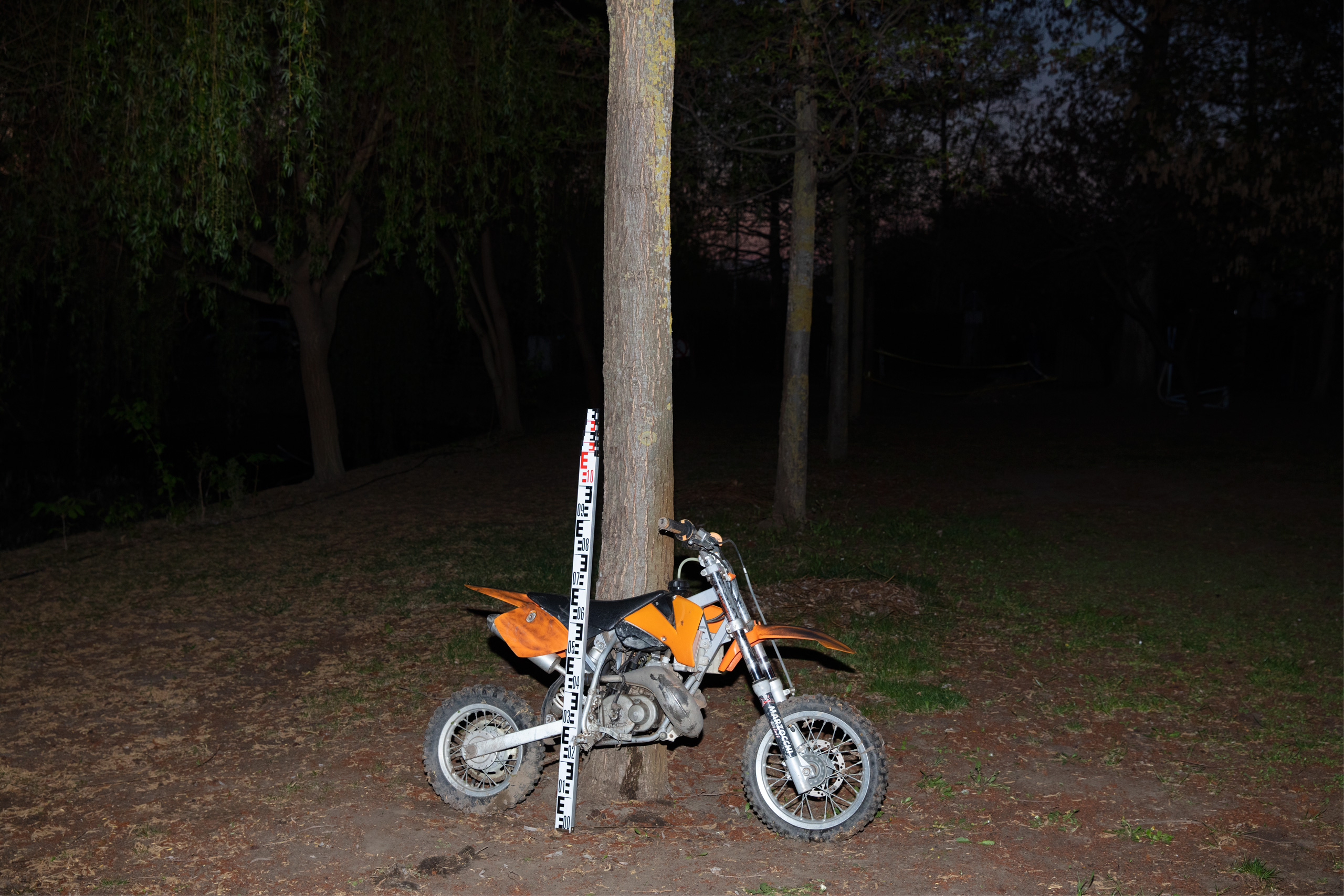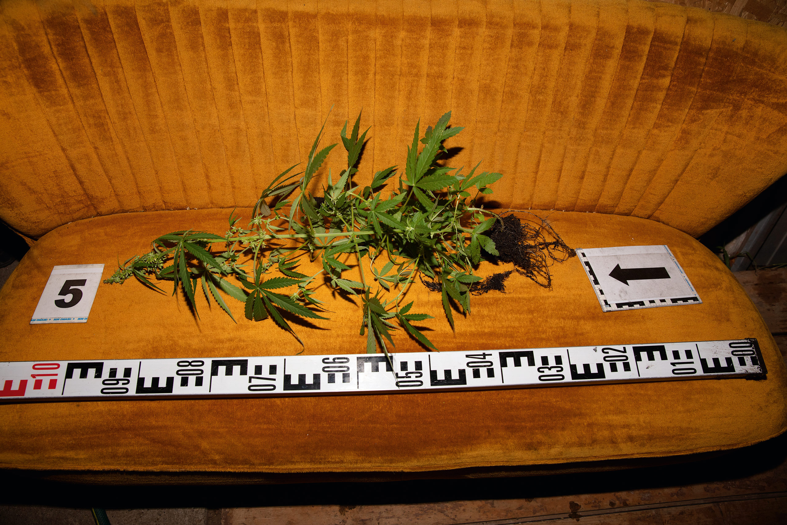 Arab számokkal megvastagítva feketéllenek a fehér műanyagon vagy éppen a szürkés, hideg fémen a bűnjelszámok, amelyek egy-egy helyszínen a tárgyi bizonyítási eszközök közvetlen közelében láthatóak. Kicentizett, fekete és fehér mérőszalagdarabok állnak mereven egy-egy nyom mellett, amelynek jelentőségét a decimális rendszerből származtatott eszközök táplálják.