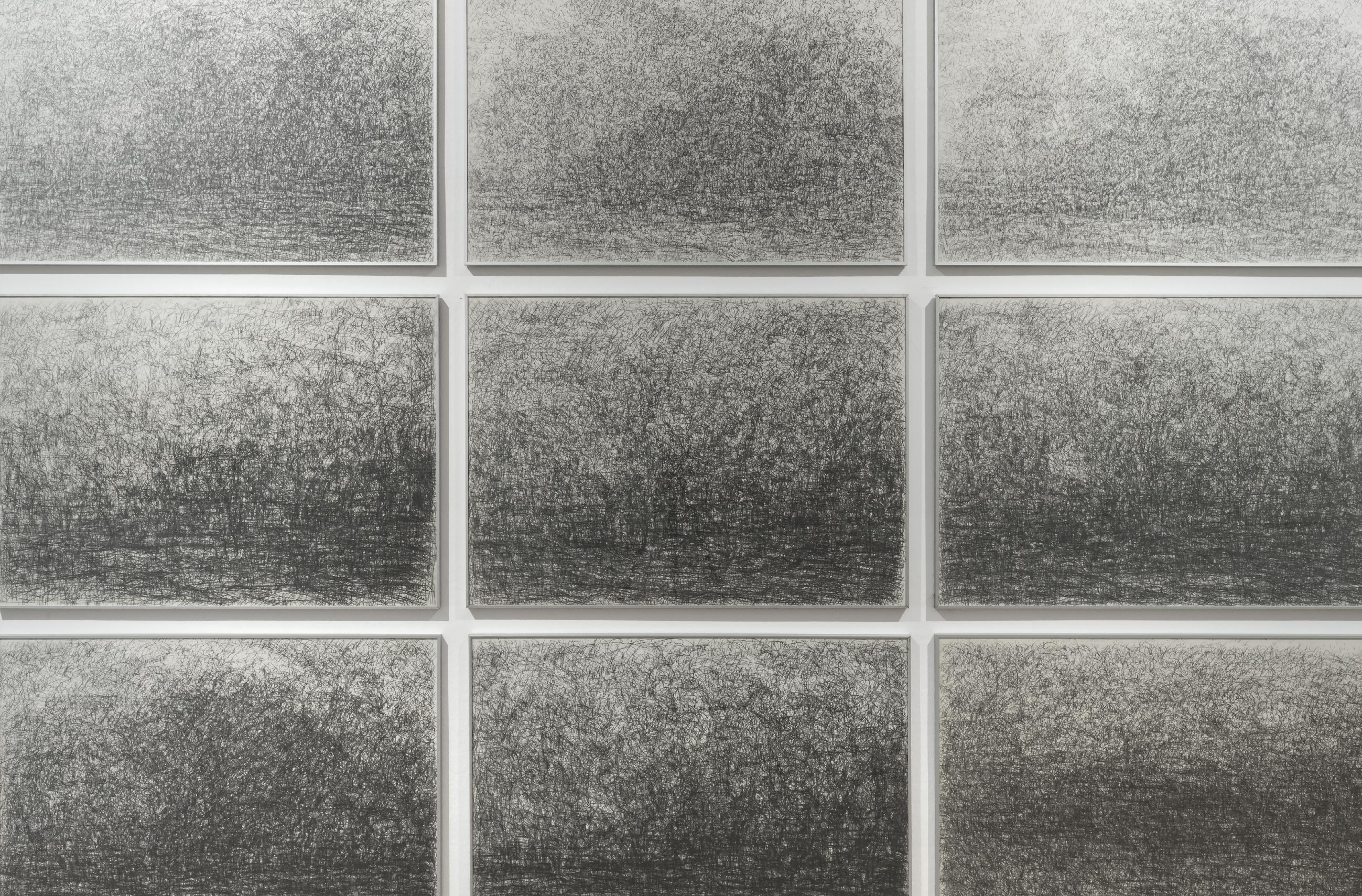 A KENYÉR VÍZ sorozathoz hasonlóan az emberi megismerés frusztráltsága nélkül fogadja el és csodálkozik rá a vonalmozgásokból, sűrűsödésekből és ritkulásokból felsejlő világ részleteiben rejlő végtelen gazdagságára. Szinte ikonfestői türelemmel és precizitással próbálja meg az egymásra másolt, egymásba kapaszkodó idő- és térrétegekből kibontani ‒ a „túlrajzolás” pillanatait elkerülve ‒ a „nem ember alkotta képeket”.